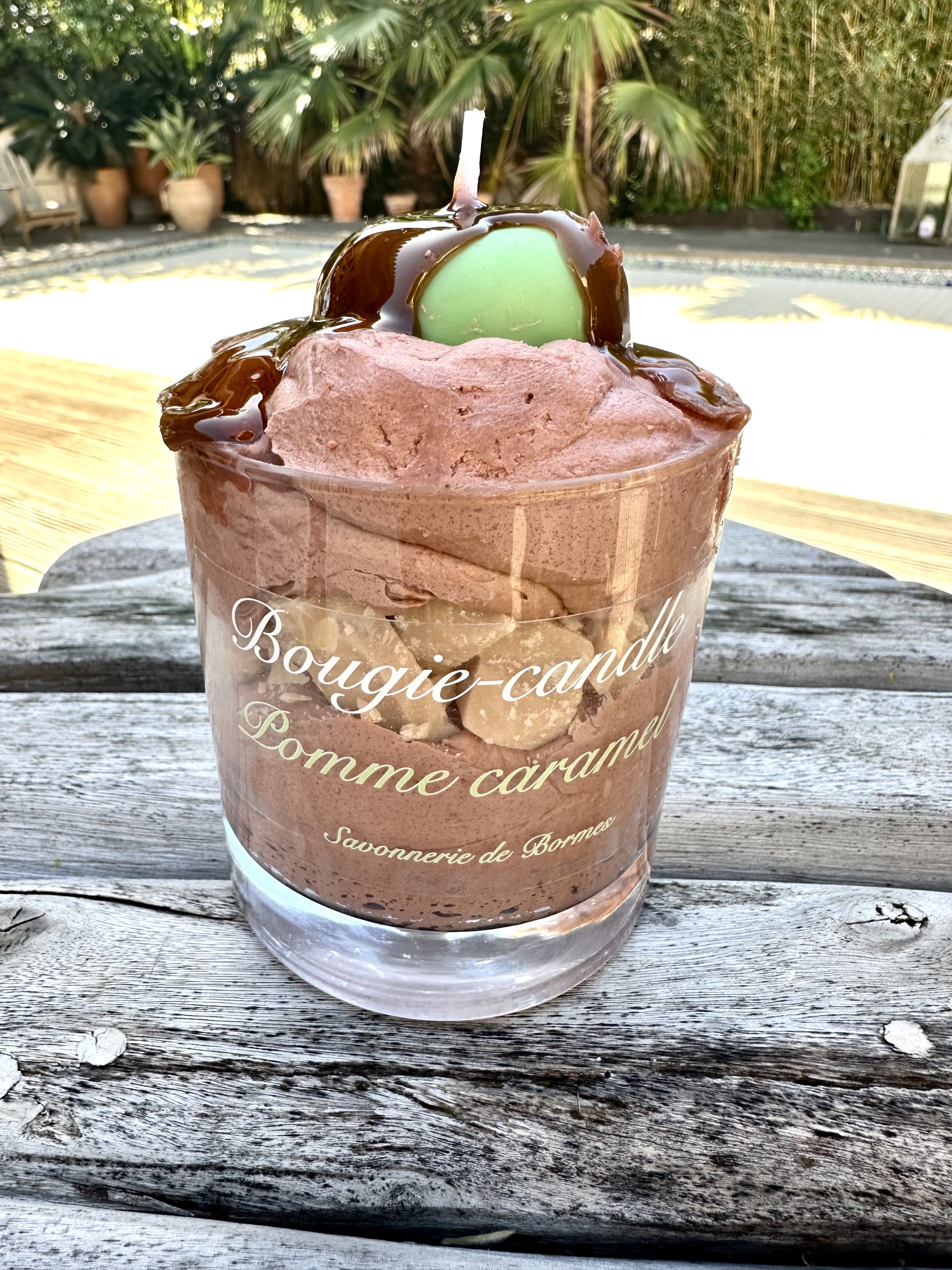 Bougie grand verre POMME CARAMEL coulis