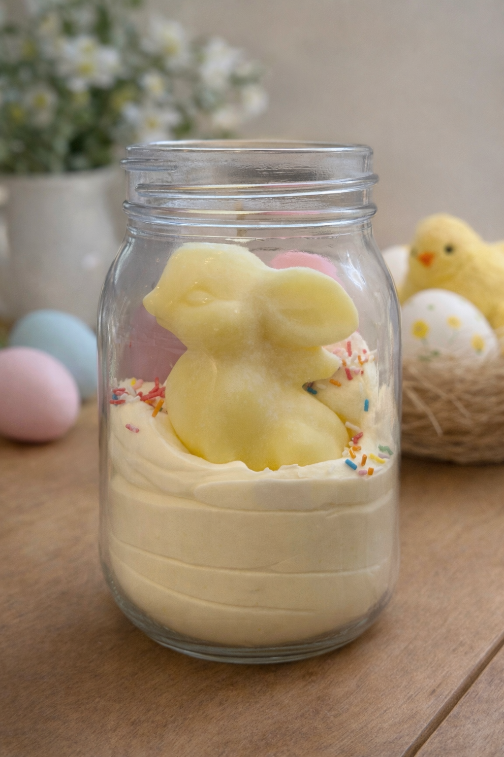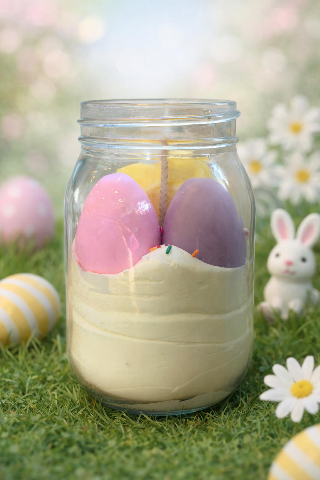 Bougie Jar Pâques Lapin et ses oeufs CRÊPES A LA FRAISE 190g
