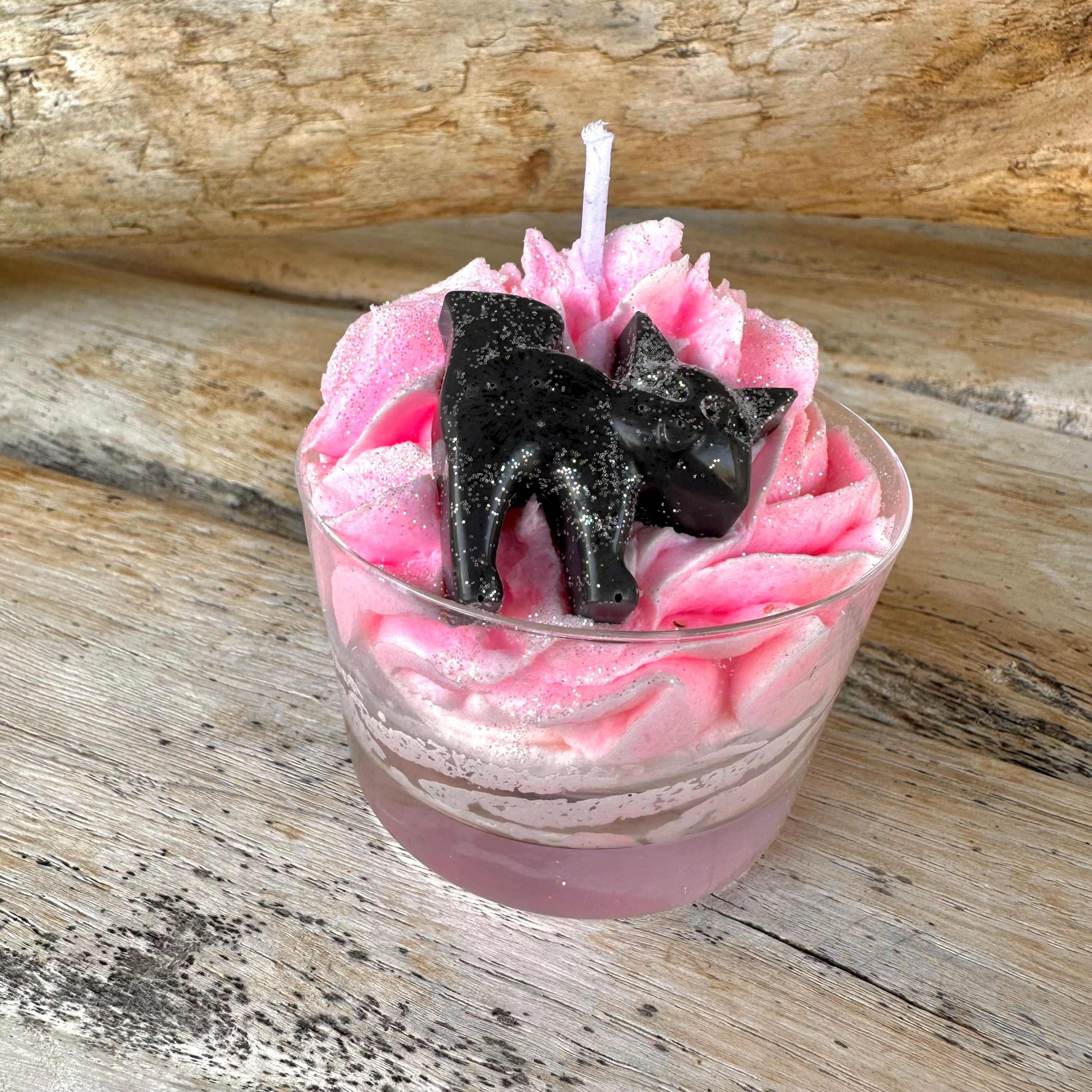 Bougie PETITE VERRINE BARBE A PAPA décors aléatoires chat, chapeau sorcière, chauve souris, fantôme